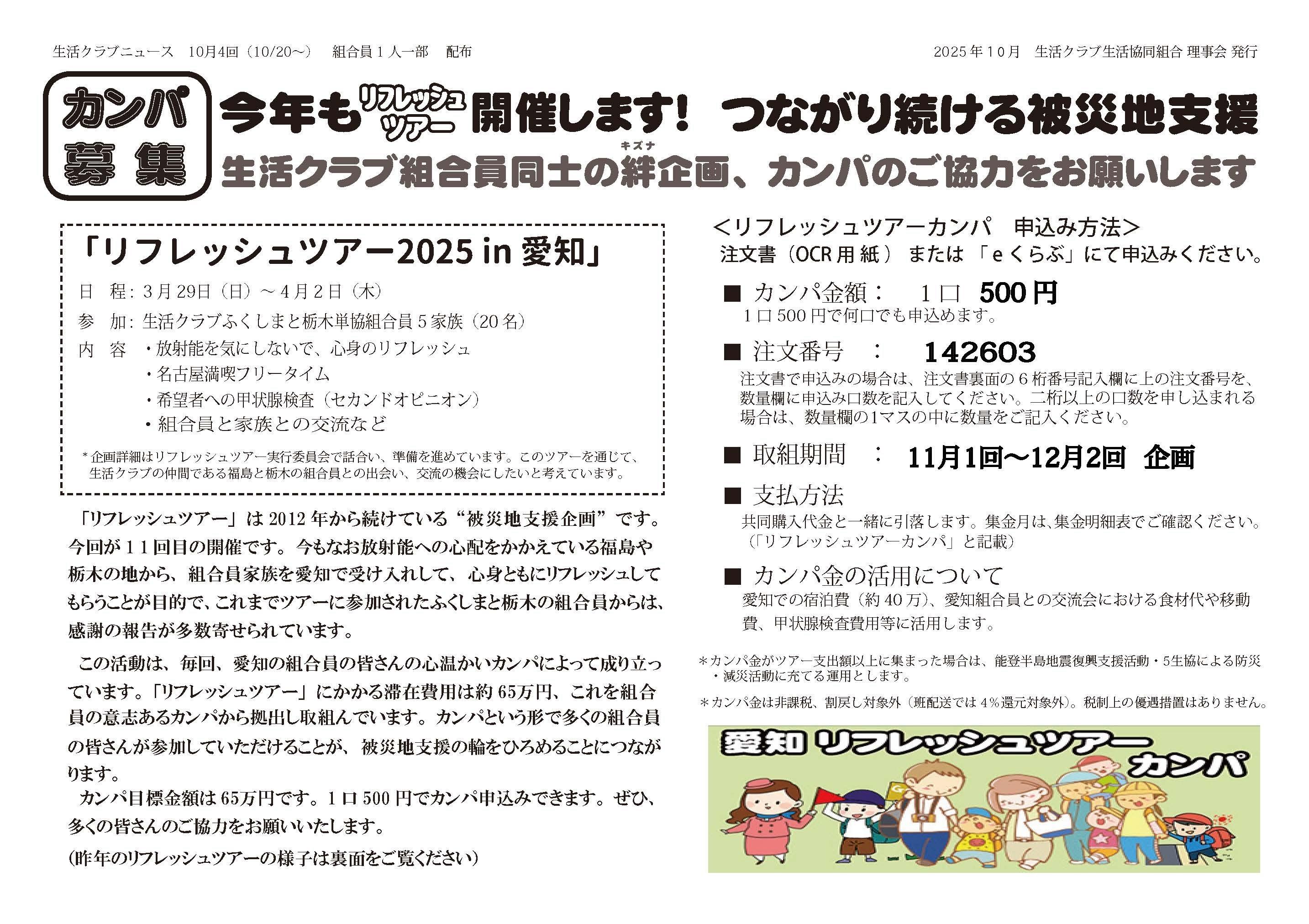 「リフレッシュツアー2025」へのカンパへご協力お願いします!