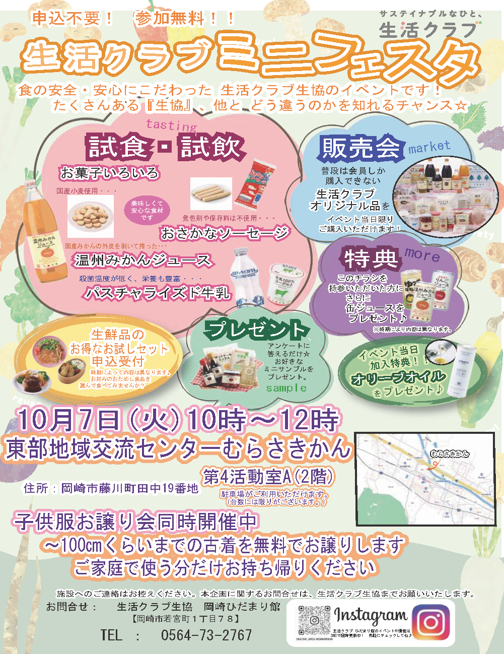 問い合わせ:生活クラブ生協 岡崎ひだまり館 0564-73-2767