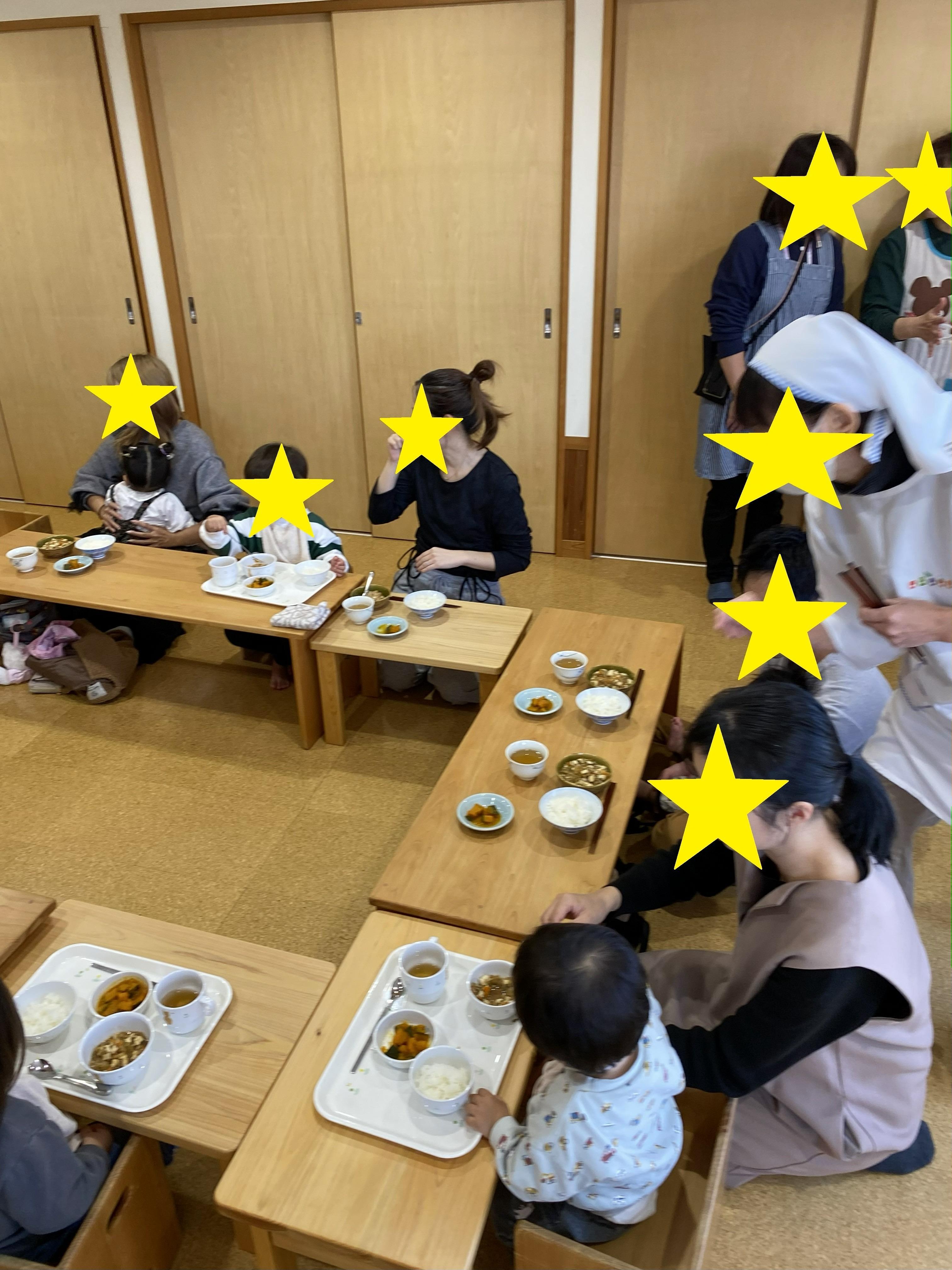 園児のみなさんが普段食べている給食やおやつをご家族の方にも食べていただこうという保護者様参加の企画です。
