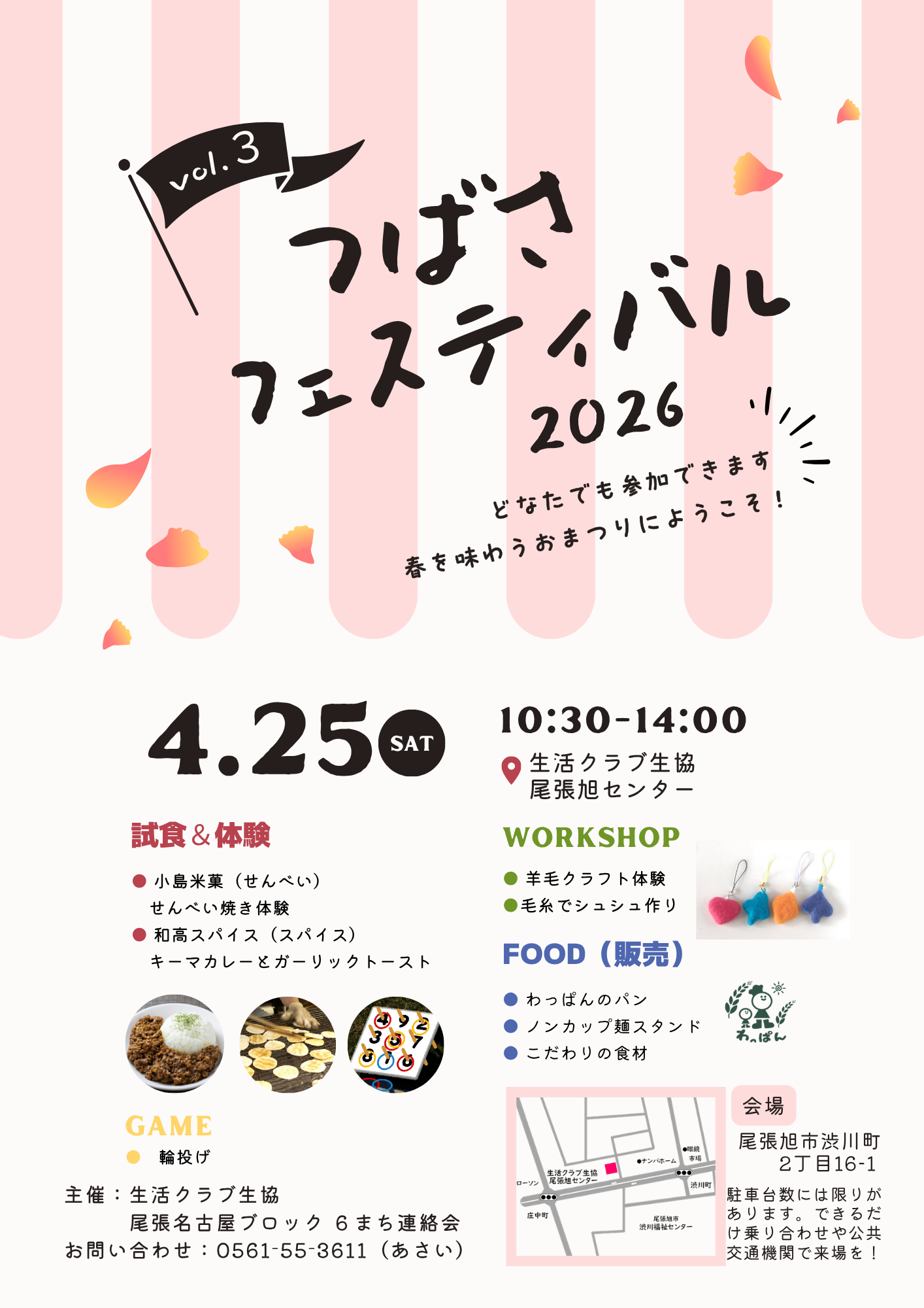 問い合わせ:生活クラブ生協 尾張旭センター 0561-55-3611 担当:浅井